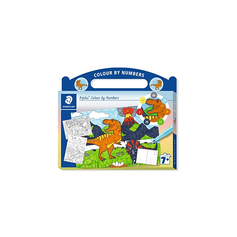 STAEDTLER triplus Paint by Numbers Set Dinosaurs with Felt Tip Pens, Fineliners, Postcards and Numbered Colour Instructions 34 CBN02