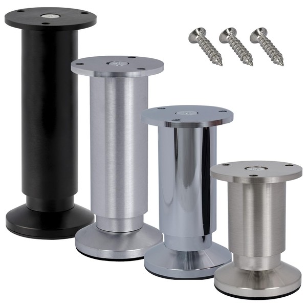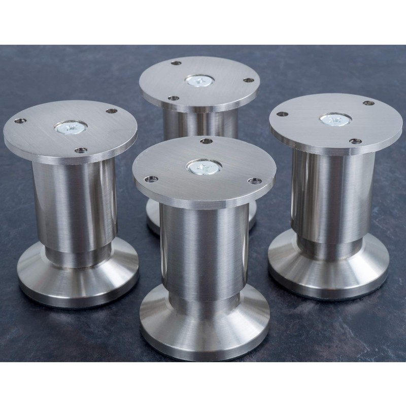 - Thanks to the latest manufacturing techniques, we achieve first-class surfaces for our cabinet feet. You can choose between brushed aluminium, brushed stainless steel look, galvanised chrome and matt black look.