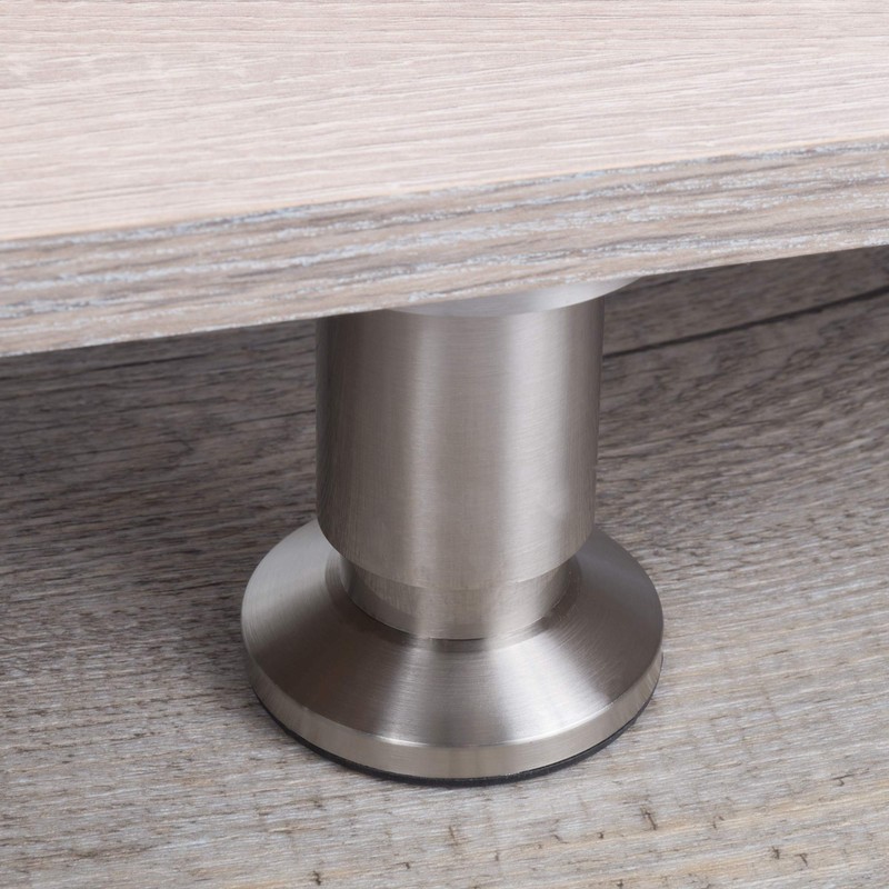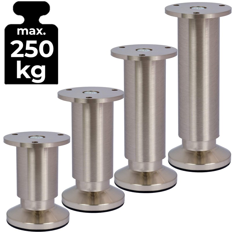 - Thanks to the most modern manufacturing processes, we get the most beautiful looks for our cabinet feet. You can choose between brushed aluminium, brushed stainless steel look, chrome, galvanised, matte black.