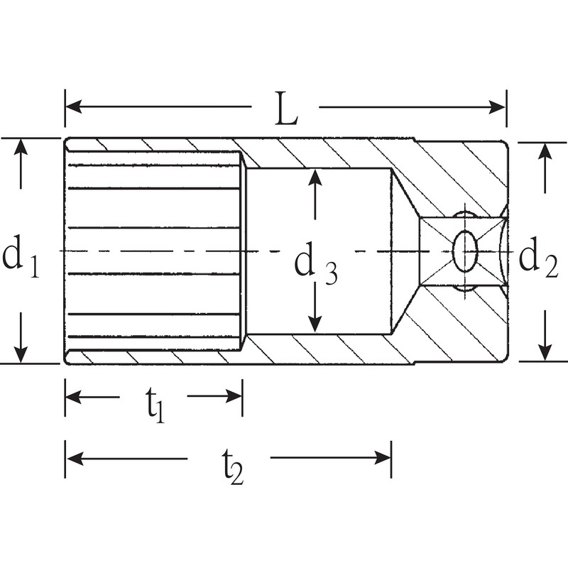 • Size: 0.6 inches (15 mm); Total Length: 3.3 inches (83 mm); Socket outer diameter: 0.04 inches (21.2 mm); Outlet outer diameter: 0.9 inches (22.7 mm); Socket inner diameter (d3 mm): 0.5 inches (14 mm); Inner surface depth of bolt contact part (t1 mm): 132 mm)
