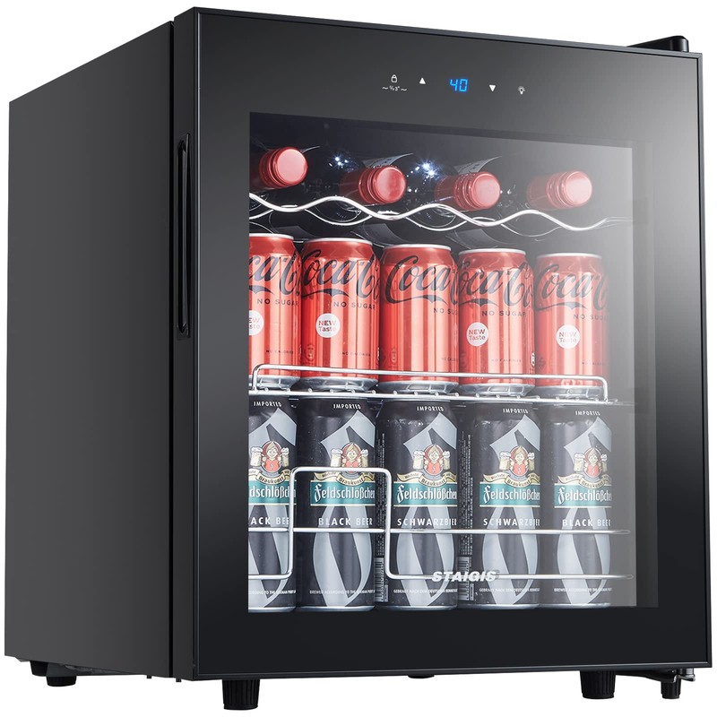 STAIGIS Beverage Refrigerator, 1.6 Cu.ft Mini Fridge w/ 45 Can Capacity, Small Beverage Cooler for Home - Freestanding, Glass Door