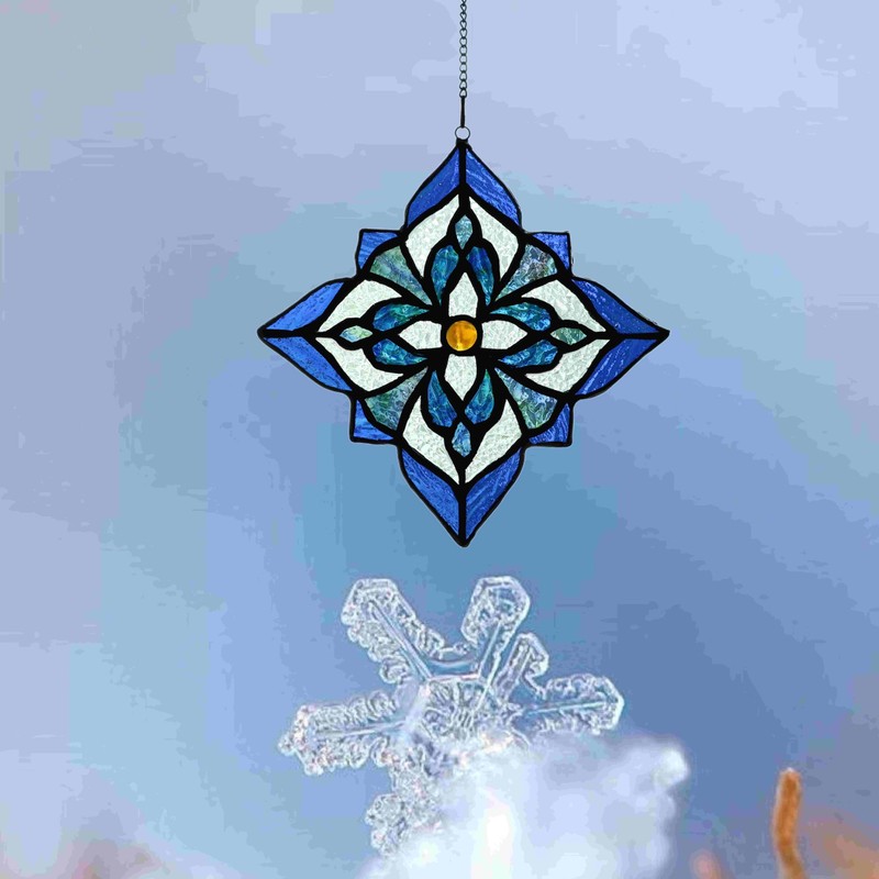 Stained Glass Window Hangings, Tiffany Style Window Panel Suncatchers Blue Art Flower