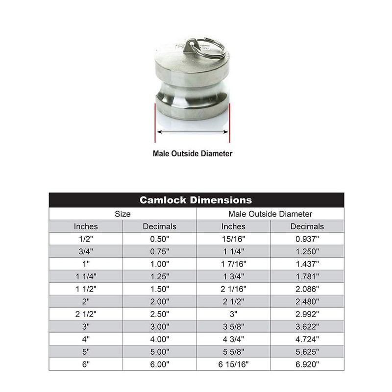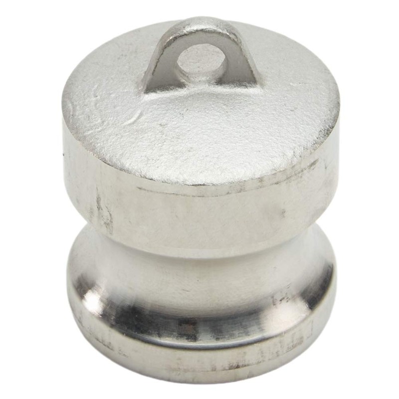 Global type "DP" stainless steel 1 inch inch male camlock dust plug. The stainless steel male camlock plug is used to seal intake and outlet openings on water pumps and hoses when they are not being used. The plug is used to seal any kind of leak and it prevents debris and other material from entering a pump. Under no circumstances should cam and groove couplings be used for compressed air or steam service!