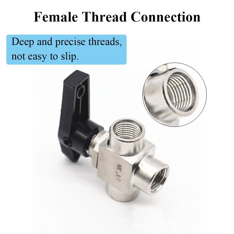 - Specification In order to meet the needs of different customers, we especially provide four specifications of NPT 1/4", 1/8", 3/8" and 1/2" ball valves. Users can flexibly choose the appropriate specifications according to the actual application scenarios and needs