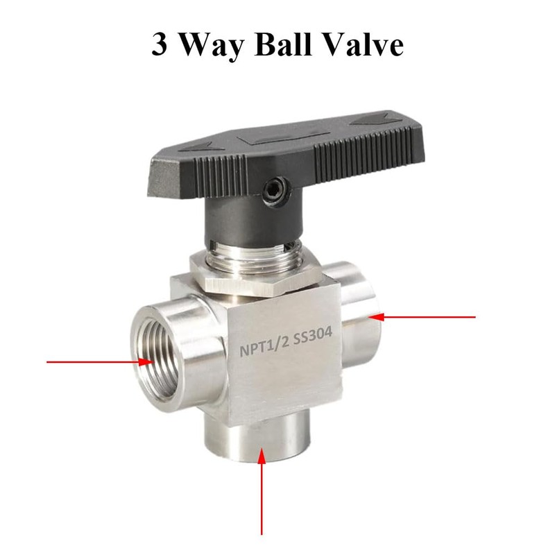 Stainless Steel 3-Way Ball Valve, 1/2 Inch Internal Thread, Durable Valve Pipe, Flow Control for Water, Gas, Air, Oil