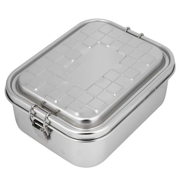 Stainless Steel 304 Single Layer Lunch Box, Stainless Steel Snack Containers Portable Lunch Box with Sealed Lid Rectangular Waterproof Microwaveable and Dishwasher Safe(M)