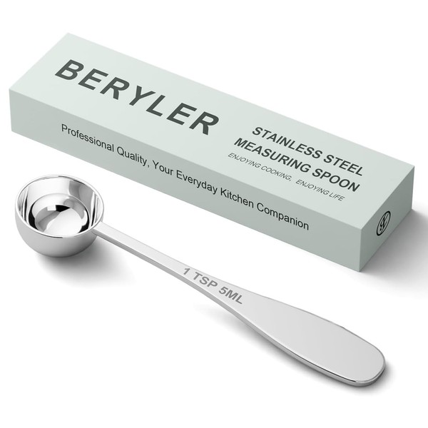 Stainless Steel 5ml Measuring Spoon - Compact Single Teaspoon Scoop with Measurement Marks, Durable Metal Kitchen Tool