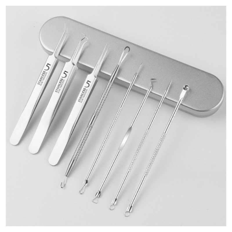✨ Achieve visibly clearer skin with our comprehensive 8-piece stainless steel extractor kit. Designed for effective removal of blackheads and sebum, it’s your secret weapon for a smoother complexion right at home.