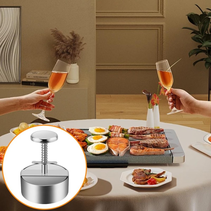 - 【Adjustable hamburger press】: Diameter: 8.9 cm. With an innovative adjustable design, the burger press ensures that each patty is formed into a perfect circle, featuring the classic grooved texture.