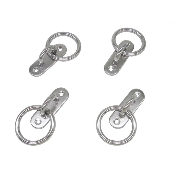 Stainless Steel Ceiling Hooks Wall Hooks, M6 Screw Mount Hook Hangers with Ring, Pad Eye Straps Tie Down Anchor Point Rigging, Pack of 4