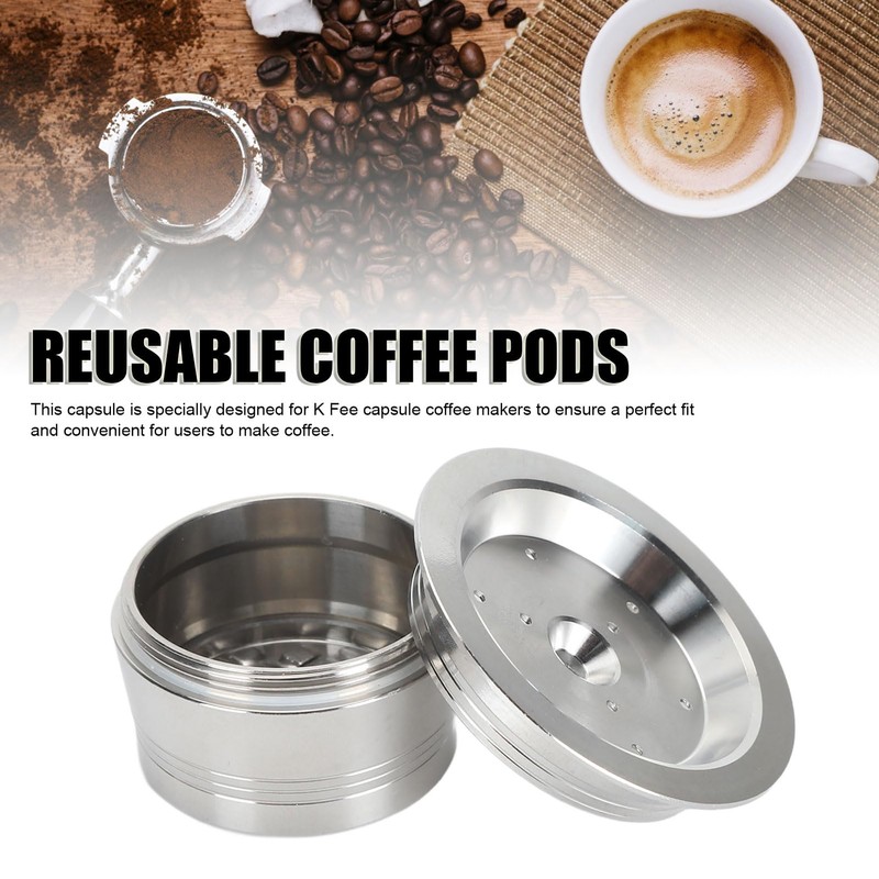 Stainless Steel Coffee Capsule, 1.3x1.1in Reusable Coffee Capsules Pods with Spoon Brush for K Fee Coffee Machine