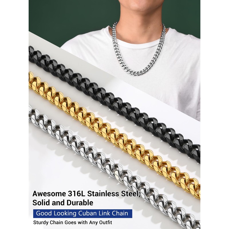 - Length of chain: 14"/18"/20"/22"/24"/26"/28"/30",Width: 3mm/6mm/9mm/12mm; the chain is finished with a matching high quality lobster clasp;