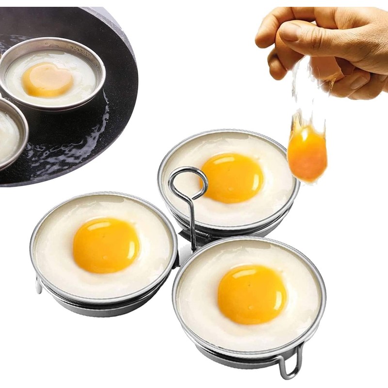 Stainless Steel Egg Poacher, Perfect Poached Egg Maker, Round Egg Cooker Rings For Breakfast Cooking Tool 3 Poached Egg Cups