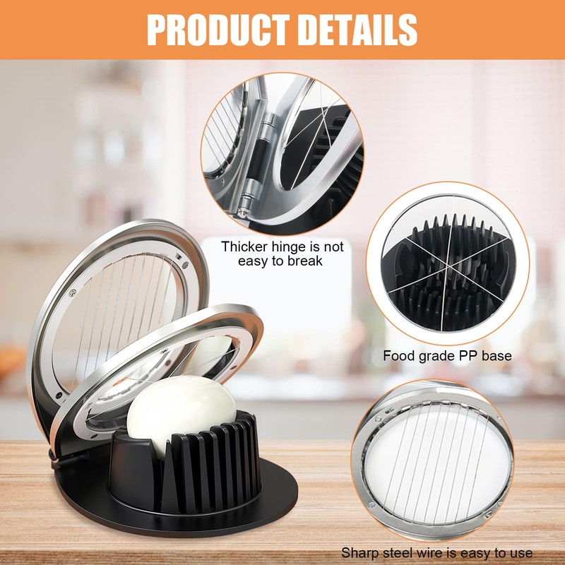 - ✅ PRECISION CUTTING WITH PROFILE SOLUTION: Our stainless steel egg slicer effortlessly turns boiled eggs into perfectly even slices or wedges - ideal for salads, canapés or garnishes. The ultra-sharp 304 stainless steel wires guarantee clean cuts without crushing, so every dish looks professional!
