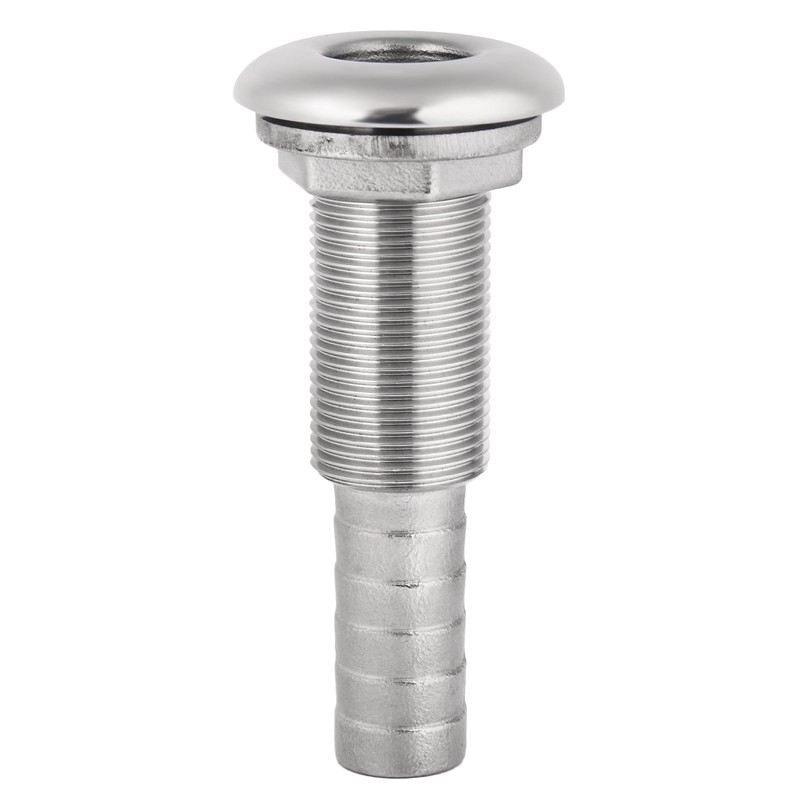 - Stainless steel thru-hull with straight barb for hose.