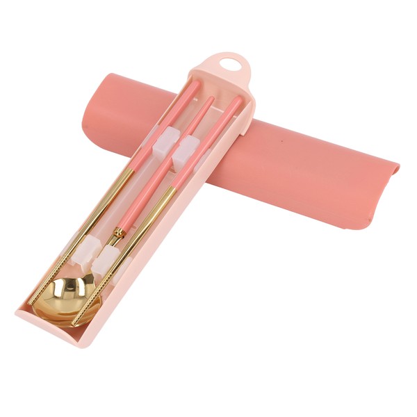 Stainless Steel Flatware Set Reusable Utensils Set Student Cutlery Storage Box Travel Fork Spoon Chopsticks SetPink Gold