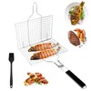 Stainless Steel Grill Basket for Fish Vegetables, Stainless Steel Fish Grill Basket, Portable Grill Fish Holder, Foldable BBQ Grill Basket, Fish Roaster, Foldable with Basting Brush, for Fish