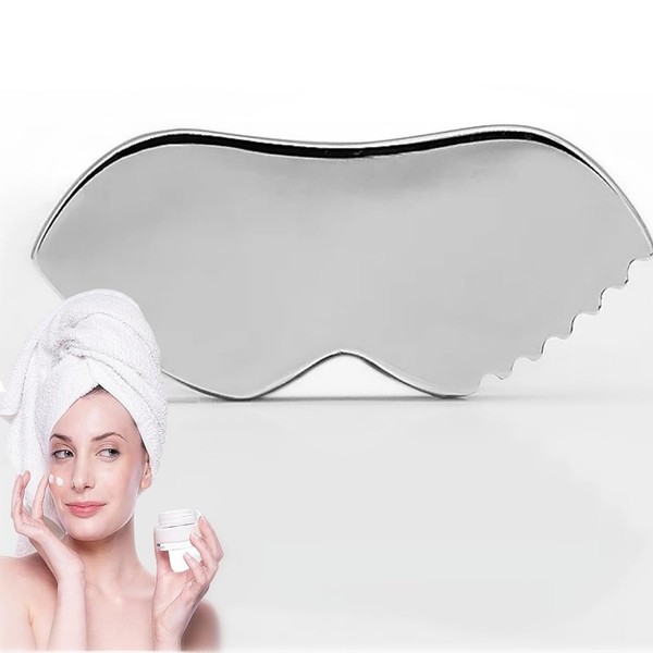 Stainless Steel Gua Sha Facial Tool, Facial Skin Care Tighten Skin Scraping Massage Guasha Board with Comb Teeth, Metal Guasha Beauty Tool for Face, Neck, Eyes and Around Lip (silver)
