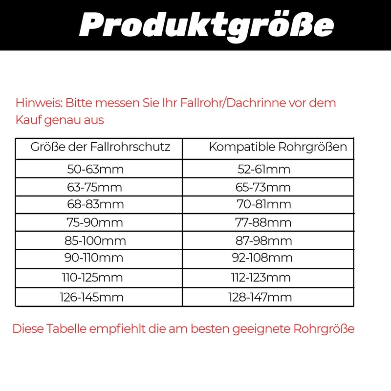 • Important: check dimensions. "Please measure your downpipe/gutter accurately before purchasing" - Our gutter leaf guard is available in different sizes. Perfect fit guarantees optimal protection