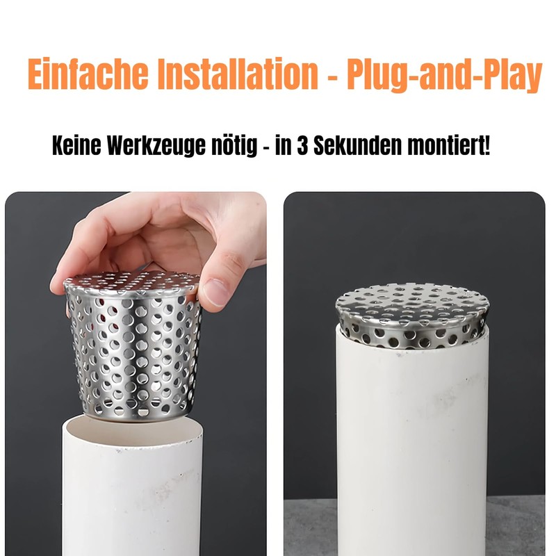 • Quick, tool-free installation: simply press and turn on the downpipe (PVC/metal/plastic) - done! No screws, no tools needed. The conical shape sits securely without scratching.
