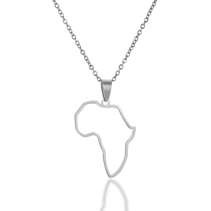 Stainless Steel Hollow Out Africa Map Motherland Pendant Necklace one Heart in Map State Jewelry, Stainless Steel, na gem