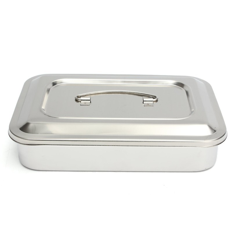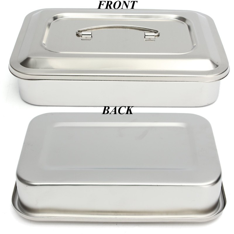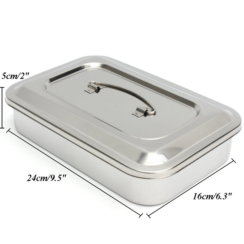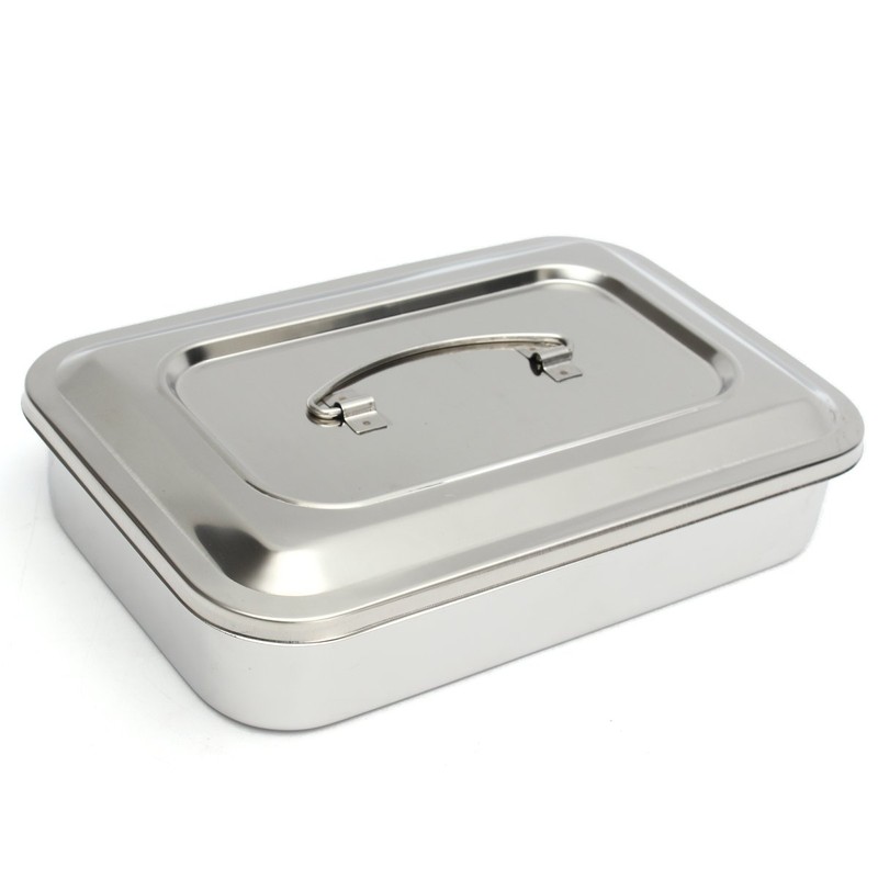 Stainless Steel Instrument Tray Organizer Holder with Lid & Handle Grip