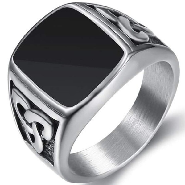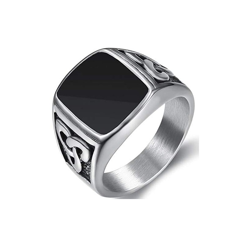 Stainless Steel Irish Celtic Knot Black Enamel Signet Ring (U)