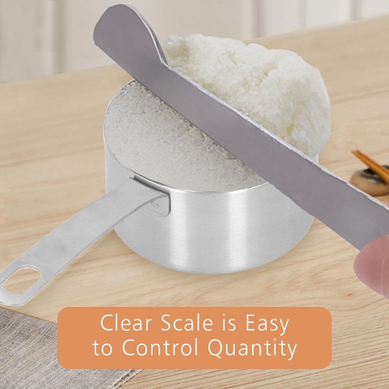 - Excellent material & healthy: The measuring cup is made of high-quality food grade stainless steel.The steel is hard,the measuring cup is durable and not easy to deform or break.The handle of the spoon cup wall is smooth and does not rust,which is natural and healthy and does not hurt your hands.