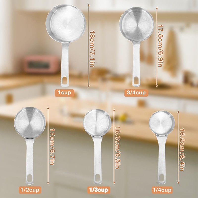 - Full size: We provide 5 sizes of 1/4, 1/3, 1/2, 3/4 and 1 cup. The size is different, the requirements of the use scene are also different. Here, we have designed measuring cups of different sizes to meet your needs to the greatest extent.