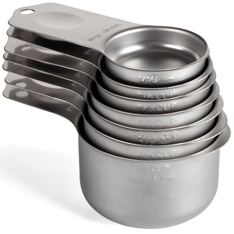 - 【MEASURING CUP SET】The stainless steel measuring cups set sizes include 1/8 cup,1/4 cup,1/3 cup,1/2 cup,2/3 cup,3/4 cup,1 cup.Seven different sizes for you to use in cooking or baking.