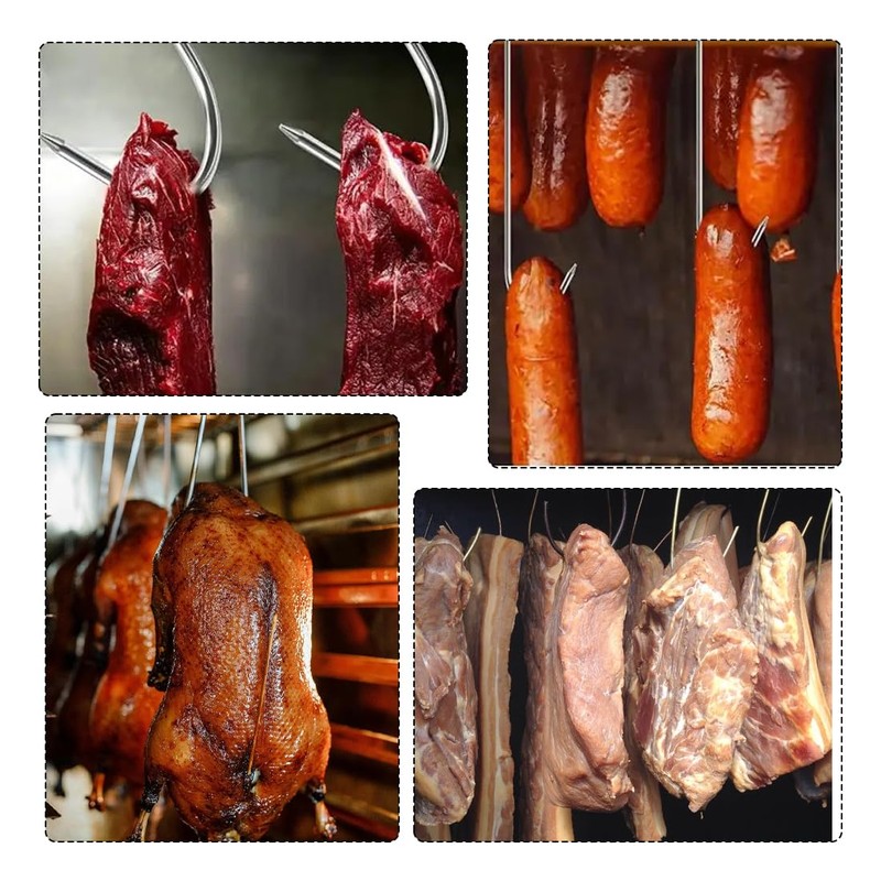 - Easy to install: polished, one pointed end, one blunt end. Strong bearing capacity, super strong, stainless steel, high load capacity, long service life, beautiful and practical, modern, lightweight, multifunctional. Thanks to the food-safe stainless steel, it is ideal for hanging sausages and meat.