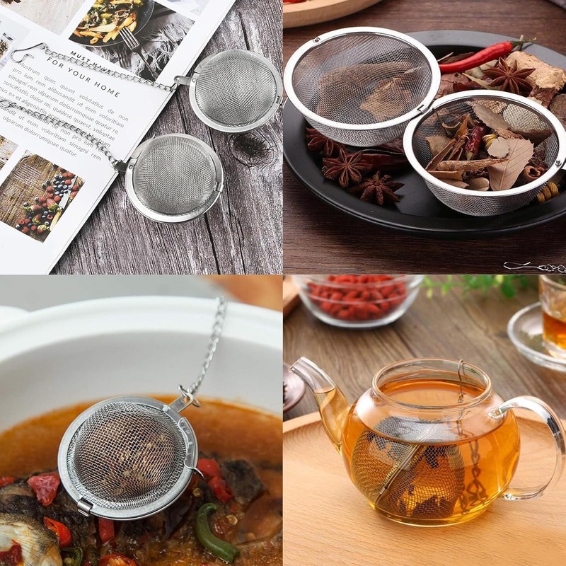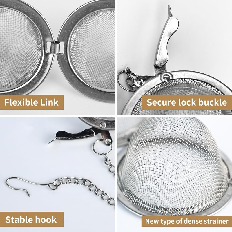 • Multiple Purpose: Stainless steel tea strainer infuser balls are great for filtering all types of leaf teas such as green tea, oolong tea, white tea, dark tea, and chai tea; also great for use in pots and pans to infuse seasonings into cooked food.
