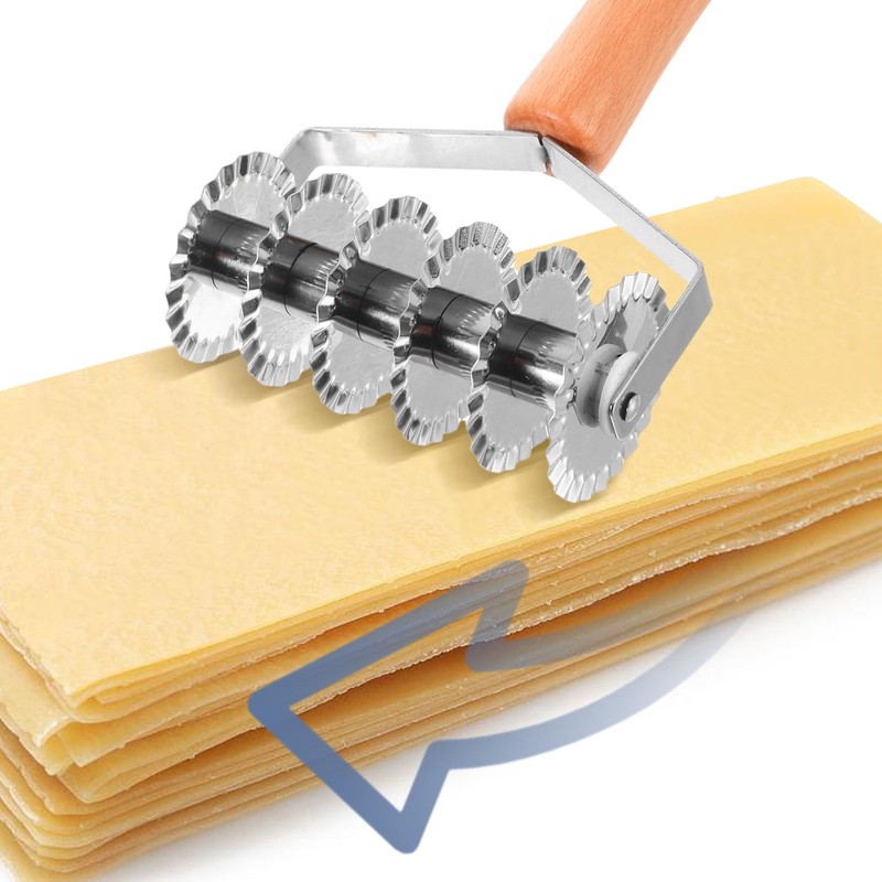 Stainless Steel Noodle Cutter: Pastry Lattice Roller Docker Wood Handle, Past...
