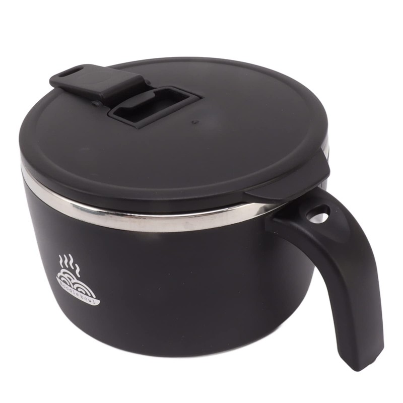 Stainless Steel Pasta Bowl 900ml Instant Noodle Bowl Double Layer Hollow Insulation with Lid (Black)