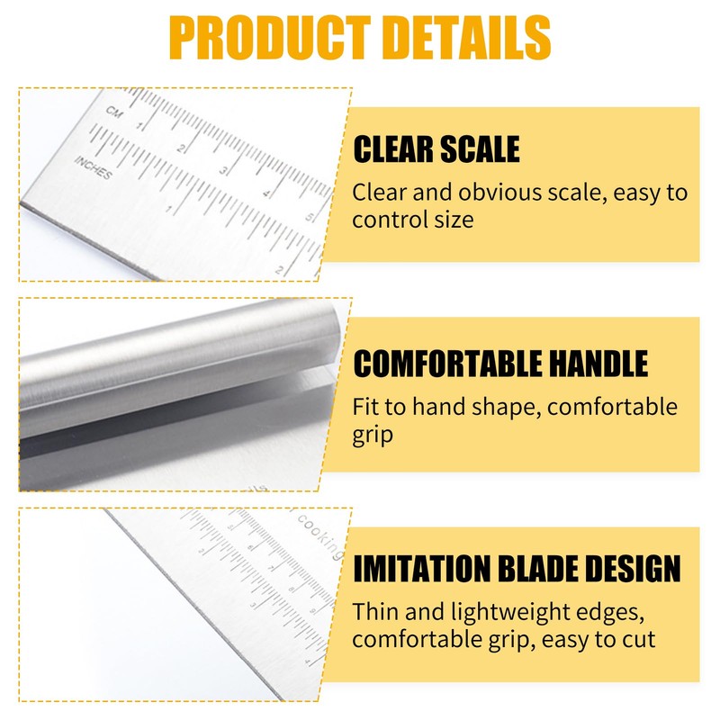 - Multifunctional Tool: Enhance your daily cooking with this food scraper tool. Stainless Steel Dough Scraper Aside from chopping and measuring dough, Pastry Scraper also perfect for cutting vegetables and cleaning your kitchen surfaces, serving as an indispensable tool in your kitchen.