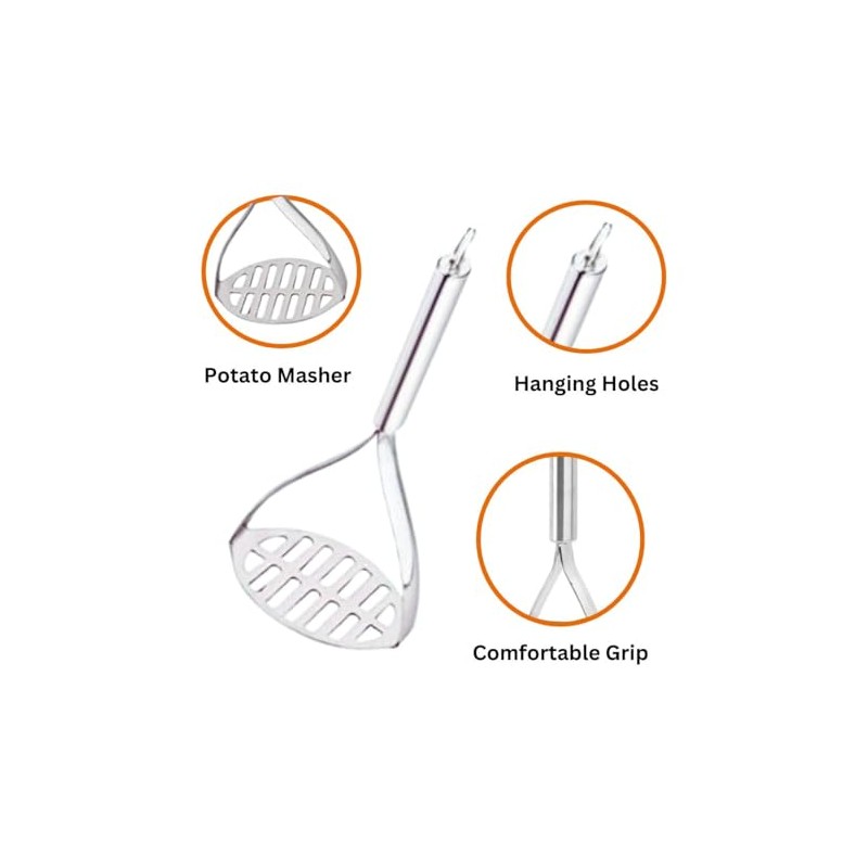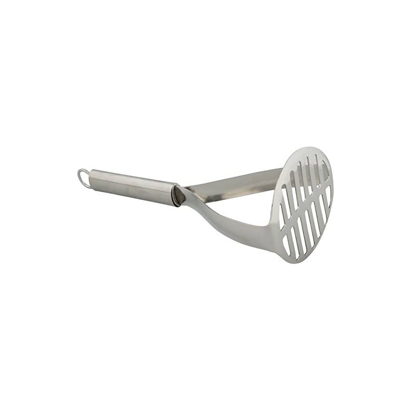 - This potato masher kitchen tool is made of stainless steel, Not easy to rust, so no need to worry about the safety of your family. Can be used to Grind and mash tomato and gravy in any Curry directly while cooking.