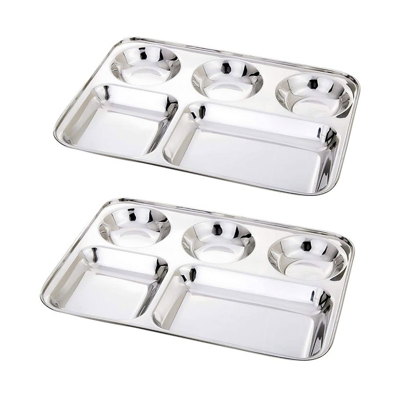 - Package Content : Stainless Steel 5 Square Compartment Round Tray Set of 2