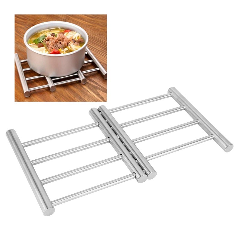 Stainless Steel Retractable Trivet, 8x9 Inch Trivet Coaster Hot Pot Placemat Expanding Non Slip Insulation Mats for Kitchen Dining Table Countertop