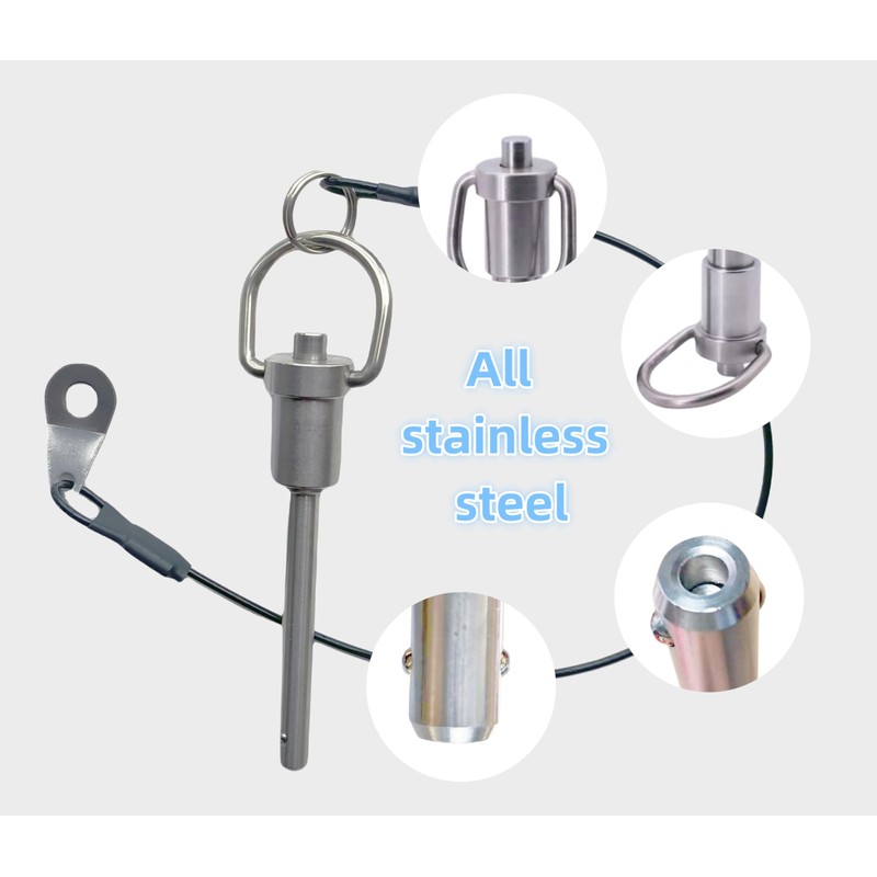 - [Design]: Quick-release pin is a fastener connector used for quick locking, fastening, adjustment and fixing, which can quickly and easily lock frequent connections. Double steel balls, locking is more secure. And it is equipped with a safety rope to prevent loss and is easy to carry.