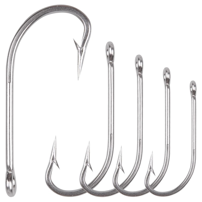 - SIZE & QUANTITY - 50pcs strong stainless steel forged O'shaughnessy J fishing hooks, multi size choice 1/0,2/0,3/0,4/0,5/0,6/0,7/0,8/0,9/0,10/0, accommodate to a variety of soft plastic baits and pair well with a range of finesse applications