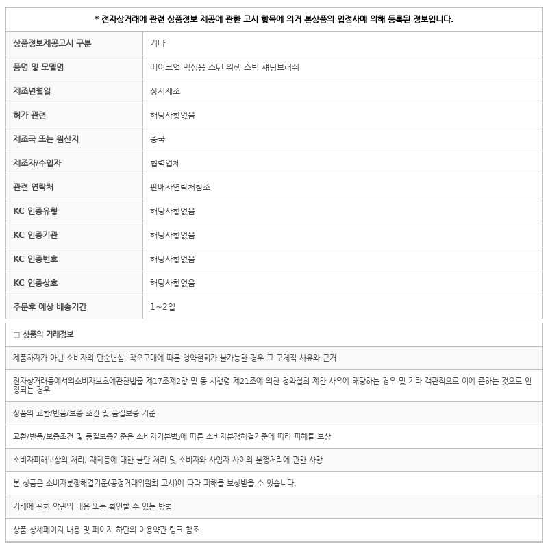 | 특이 사항 | 배송, 변경, 반품 환불에 대한 문의는 위 연락처로 문의 주세요. | ||