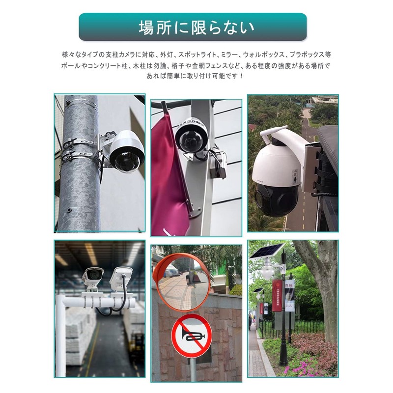 - No drilling or screwing required. Easy to install and convenient to use. The shape of the pole can be attached not only to cylinders, but also to square columns. In addition, even if there is no poles, you can use the included stainless steel band to secure it firmly in places with a certain degree of strength such as a grid-like fence. *** Warm Tips*** : Please hold the gloves when installing the security camera, avoid hand damage
