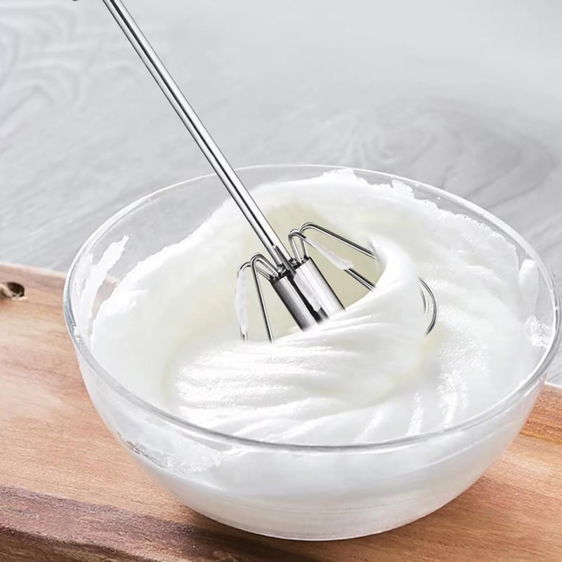 Stainless Steel Semi-Automatic Whisk, 2024 Upgraded Hand Push Rotary Whisk Blender, Hand Whisk for Egg Beater, Milk Frother, Blending, Whisking(10 Inch)