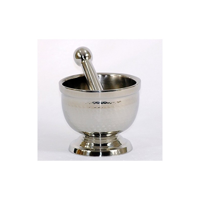 Mortar and Pestle Stainless steel hammered polished shiny, 20 oz capacity, dishwasher safe
