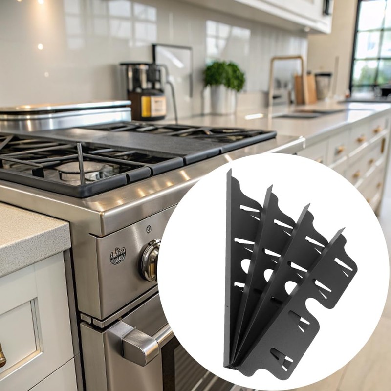 Cover the Gap: Stainless steel stovetop gap filler can effectively fill the gap between the stovetop, oven and countertop, blocking food debris, crumbs, liquids, etc., falling therein, avoiding hygiene problems caused by dirt hiding in the gap, and reducing the hassle of cleaning hard-to-reach areas.