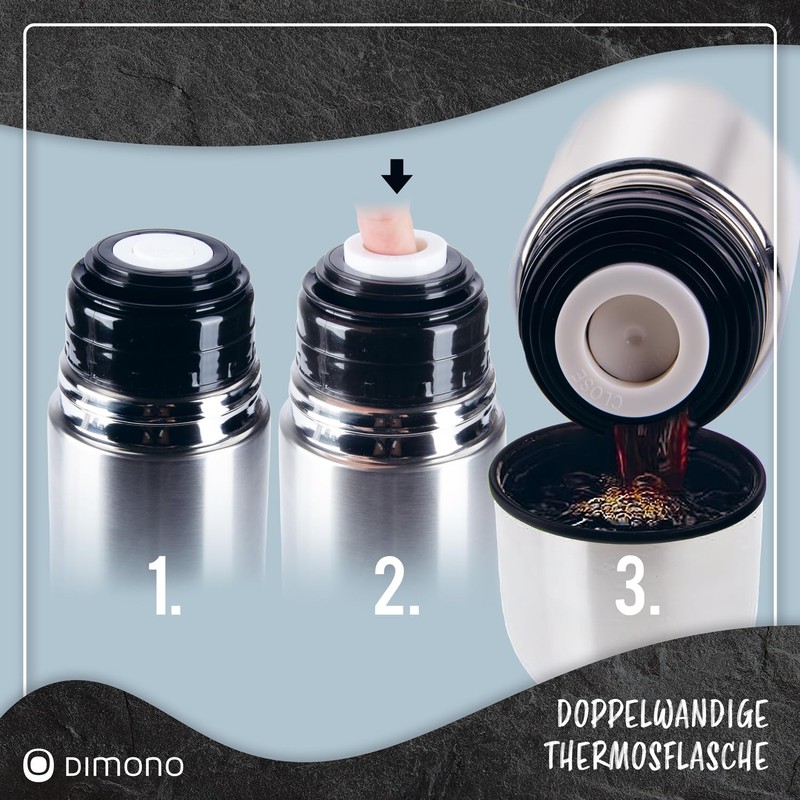 - Practical container – each thermos bottle comes with a practical cup. Simply unscrew the lid, pour and enjoy no matter where you are!