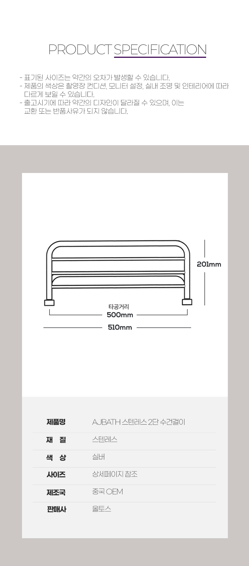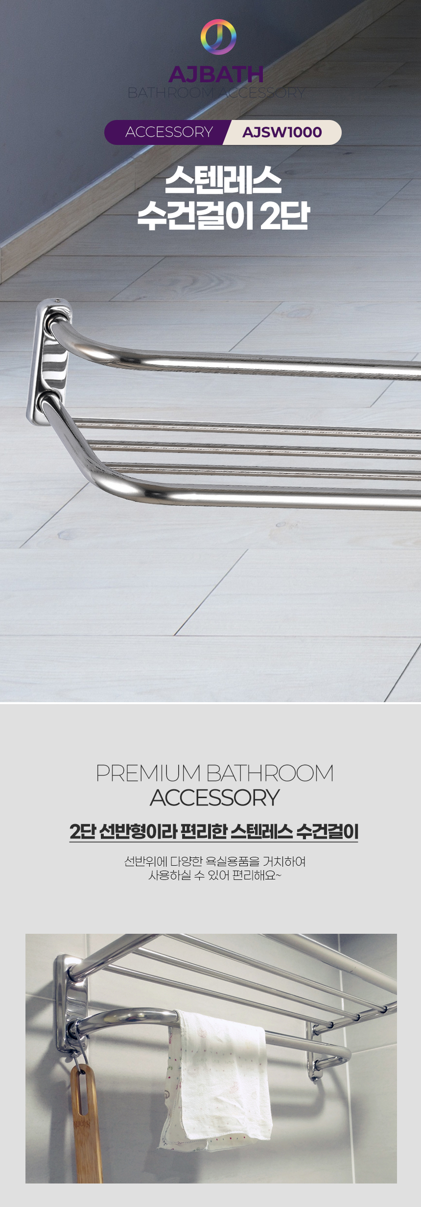Stainless steel towel rack 2-tier bathroom towel rack AJBATH AJSW2