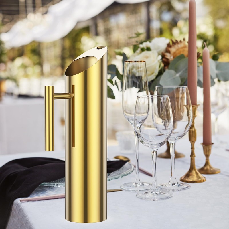 Stainless Steel Water Pitcher Rustproof Metal Pitcher with Ice Guard and Handle Polished Water Pitchers Jug Multifunctional Drinking Pitchers for Tea Juice Coffee Milk Wine in Home or Hotel(Gold,2L)