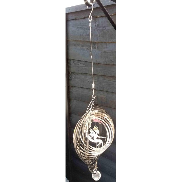 - Polished Stainless Steel Wind Spinner - Fairy Moon Design, lightweight, easy to hang and simply twist the spinner into shape for 3D effect