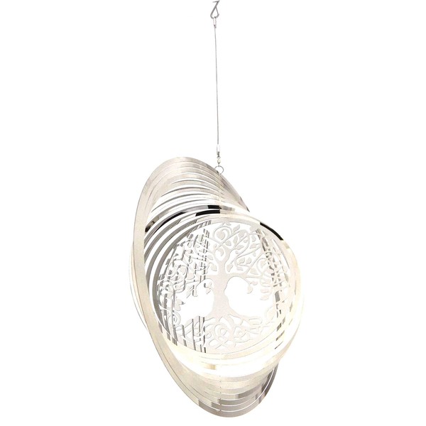 - Polished Stainless Steel Wind Spinner - Tree Of Life Design, lightweight, easy to hang and simply twist the spinner into shape for 3D effect